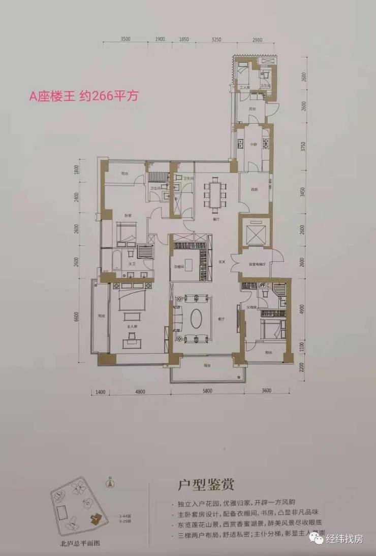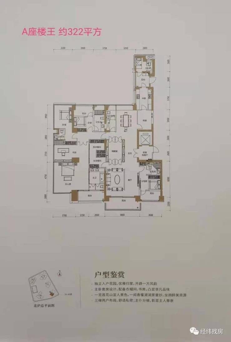 1栋A座:148米,46层,共85户,朝南为主,三梯两户,约266-321㎡,427㎡(顶复)