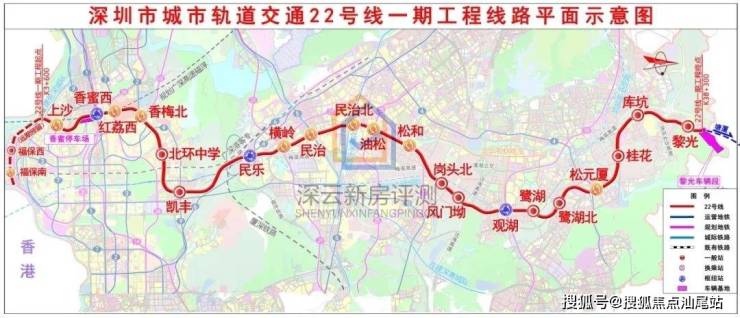 22号线鹭湖站在建,始于龙华黎光站,途经龙岗区,终于福田上沙站,开通后到福田仅需45分钟。
