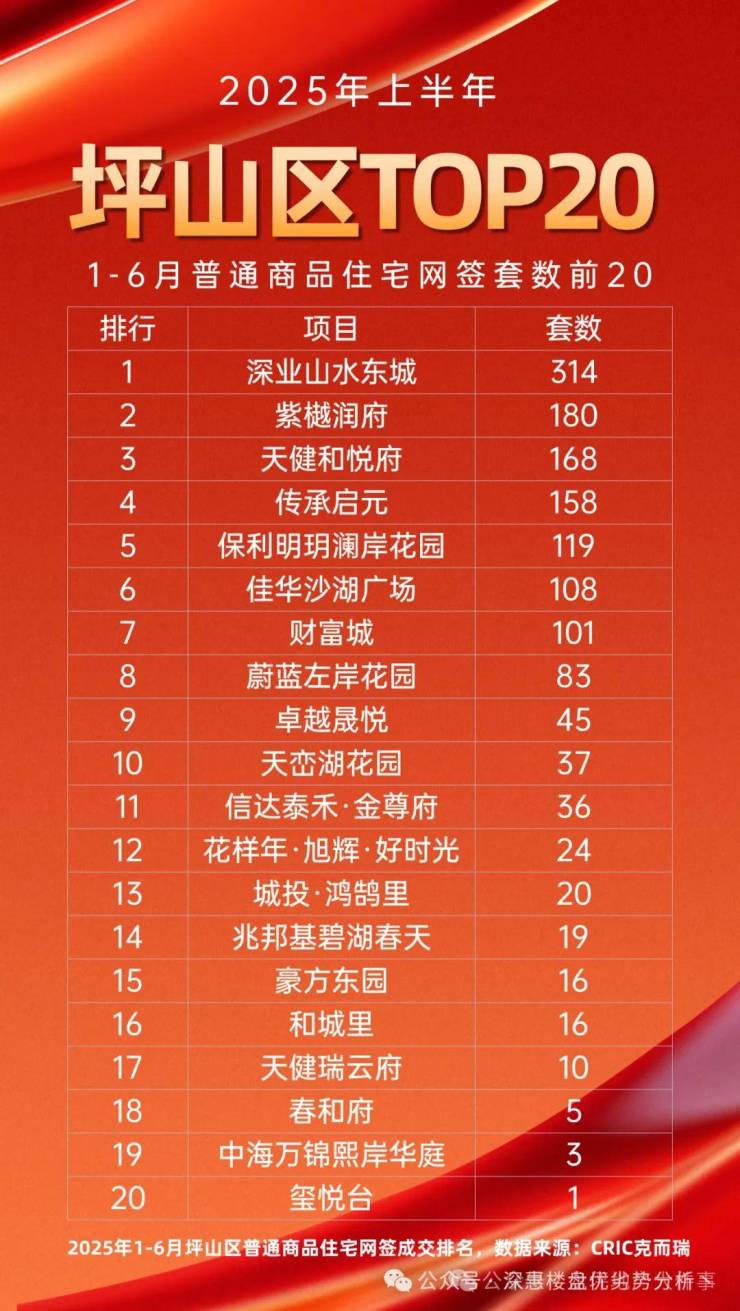 1:天健和悦府(坪山年度销量第三名,网签数据,不作假)
