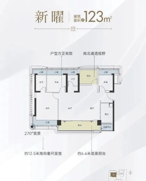 123㎡四房两厅两卫:稀缺南北通透户型,同样拥有摩天轮景观,共有25套。