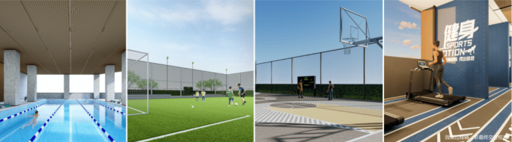 游泳馆、篮球场、mini足球场、儿童游乐场地、健身活动场地等活力功能区;