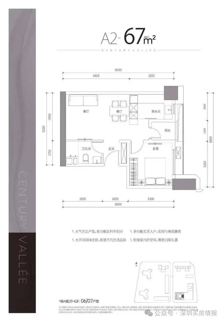 67-71㎡一房:280-360万 月租金0.9-1.2万