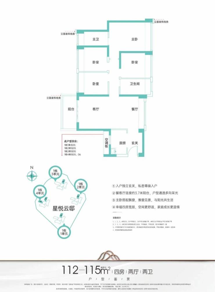 约115㎡四房两卫 ,住宅 4.62-5.4万 532-621万 南北通透