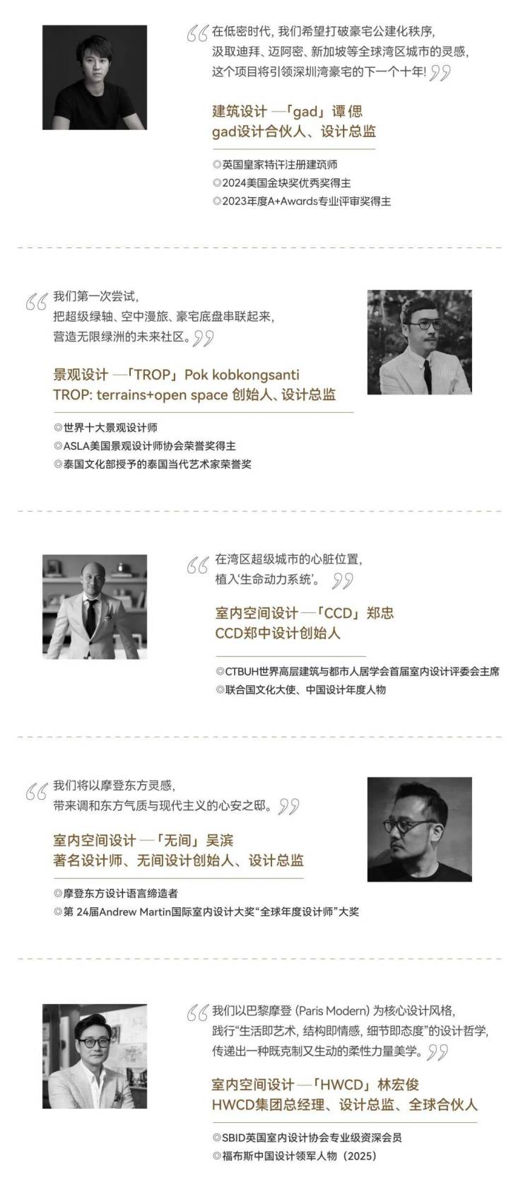 盛邀gad国际团队、TROP、CCD、无间、HWCD等顶级设计资源,联袂打造深圳湾首个低密先锋豪宅。