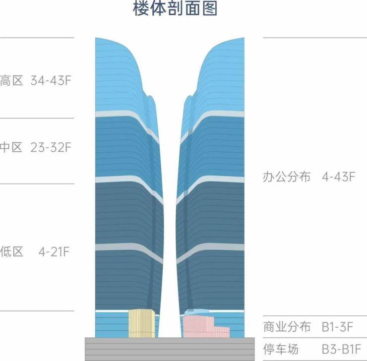 美学立面,舒适能效:采用高透明度玻璃幕墙,隔音、隔热、防晒,空间通透舒适。