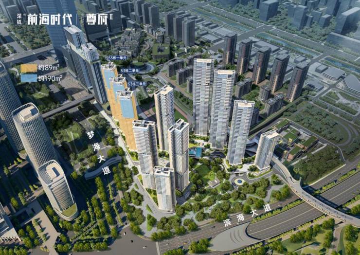 前海时代三期位于前海桂湾片区南侧,临近滨海大道和桂湾河,在整个前海自贸区内算是住宅的C位,正南是水廊道公园,东南望南山,西南看城市海景。