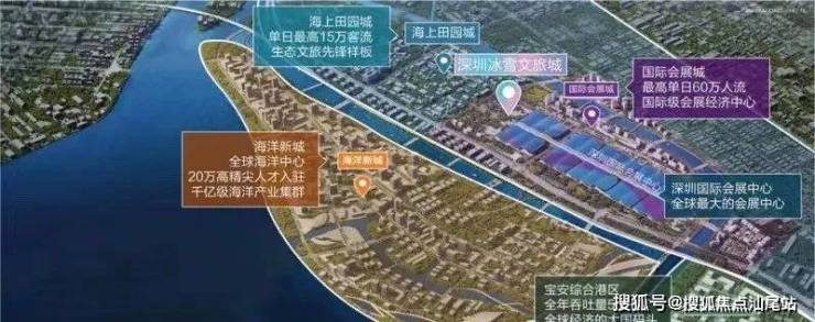根据规划,海洋新城位于珠江口东岸,深圳大空港规划区西北部,毗邻全球第一大会展中心深圳国际会展中心,规划面积7.44平方公里。