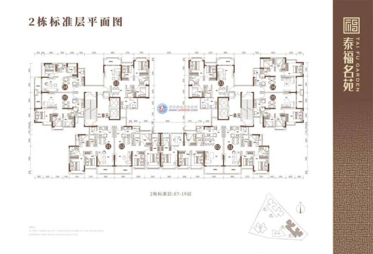 2栋户型7-19层分布图: