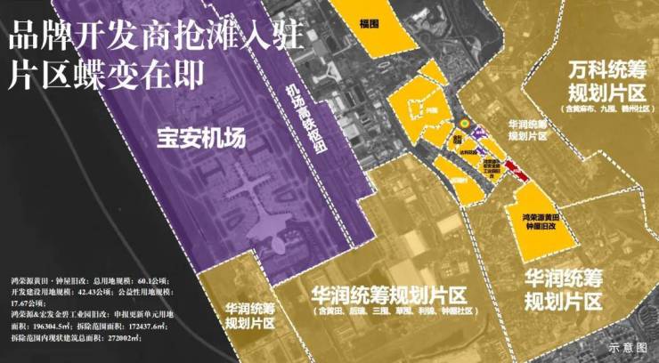 华润(草围旧村及南片区城市更新单元)、鸿荣源(钟屋黄田旧村更新项目)、宏发(黄田金碧片区城市更新旧改项目)等房企巨头均已抢滩入驻,助力片区蝶变,大体量城市更新革新片区价值,未来将不断丰富项目周边的文体、商业配套,进一步提升片区的生活品质