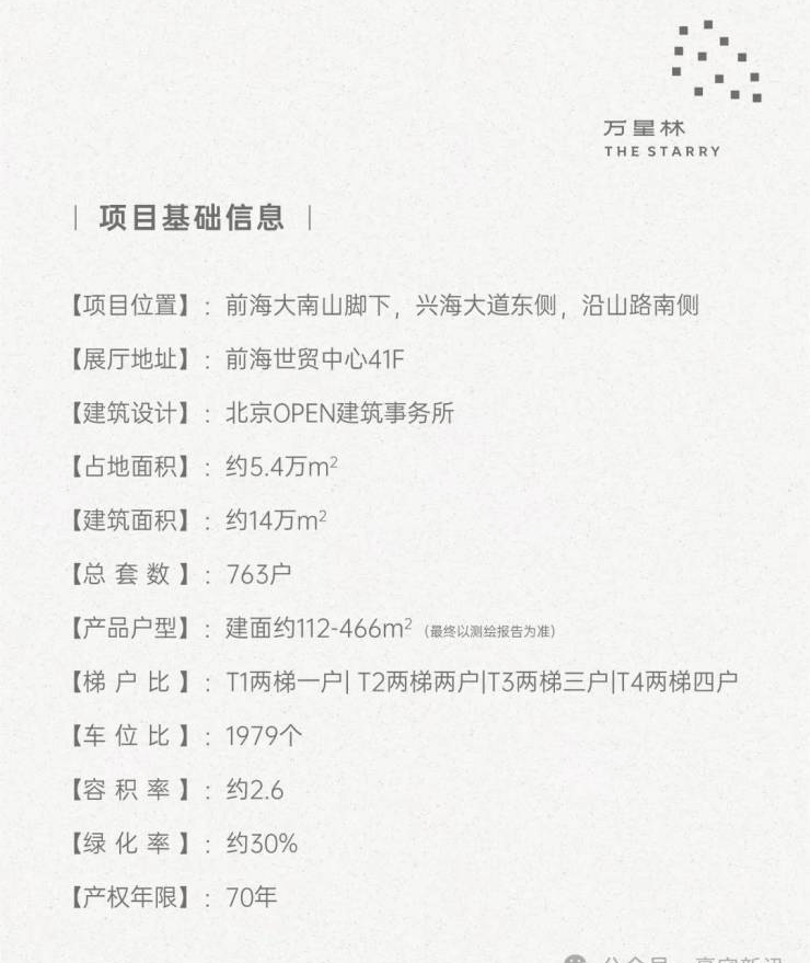 最新消息:前海低密度豪宅万星林花园预计4月中开放展厅,4月低开放实体样板间,5月取证开盘 》首推面积 150-230m2 3房4房 ,纯改善舒适大户型。