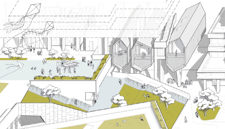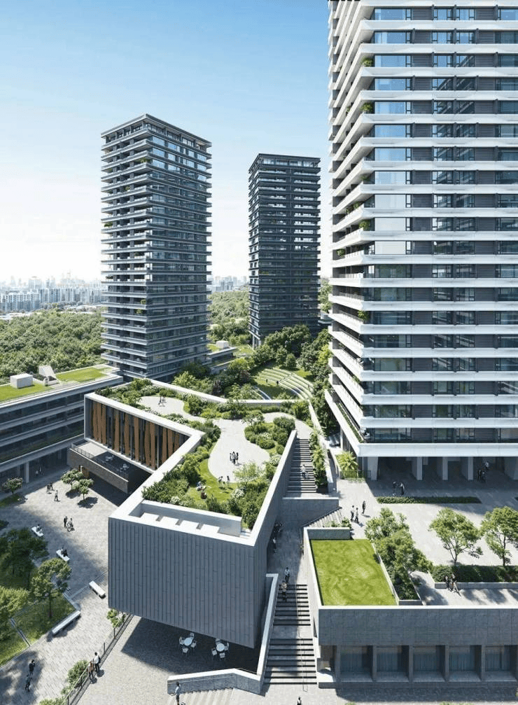 建筑限高80米,采用高层塔楼与多层板楼结合的设计,由北京OPEN建筑事务所操刀,以“方塔”布局和“多个地面”台地系统为特色,强调公共空间与生态融合,颜值品质拉满。