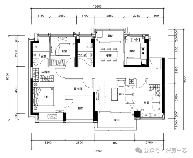 ✅ E03户型:约135㎡ 稀缺五房两厅两卫:
