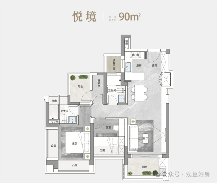 【主力户型】建面约90㎡、95㎡、105㎡、143㎡ (3房&4房)