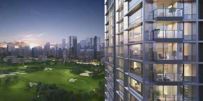 100M高空打造全悬挑空中连廊,空中透明无边际泳池,整个连廊敞开面对公园方向,将高尔夫公园景观和城市景观尽收眼底。