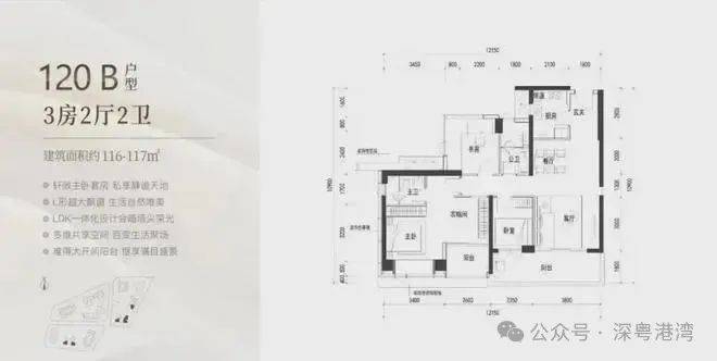 105㎡的3房2厅2卫,B户型(2栋3单元02/06户型),设计的是经典竖厅格局,客厅3.6米开间,LDKB一体化设计,三开间朝南,动静分区,3个卧室分别做到了主卧13.12㎡/次卧9.9㎡/次卧8.4㎡(包含墙体飘窗),客厅连接次卧出6.4米长的宽景大阳台,U型厨房,卫生间干湿分离,得房率约90%(包含赠送),正南或东南朝向。