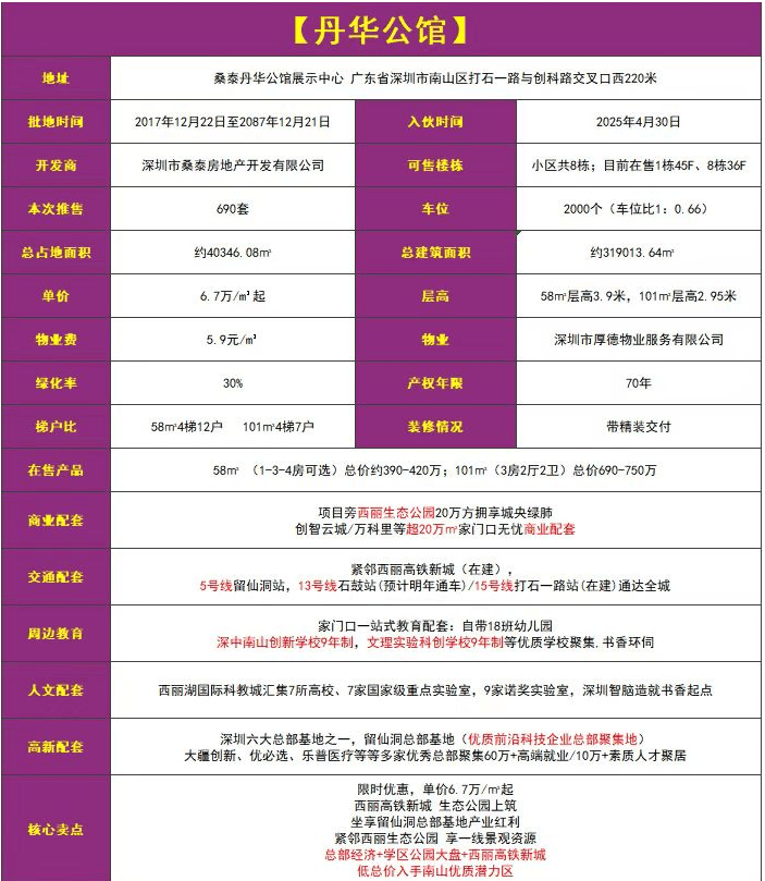价值1.【稀缺住宅】约58㎡创新户型,层高3.9米,抢驻深中南山创新学校旁精装小户;101㎡南山总部集群舒适三房。
