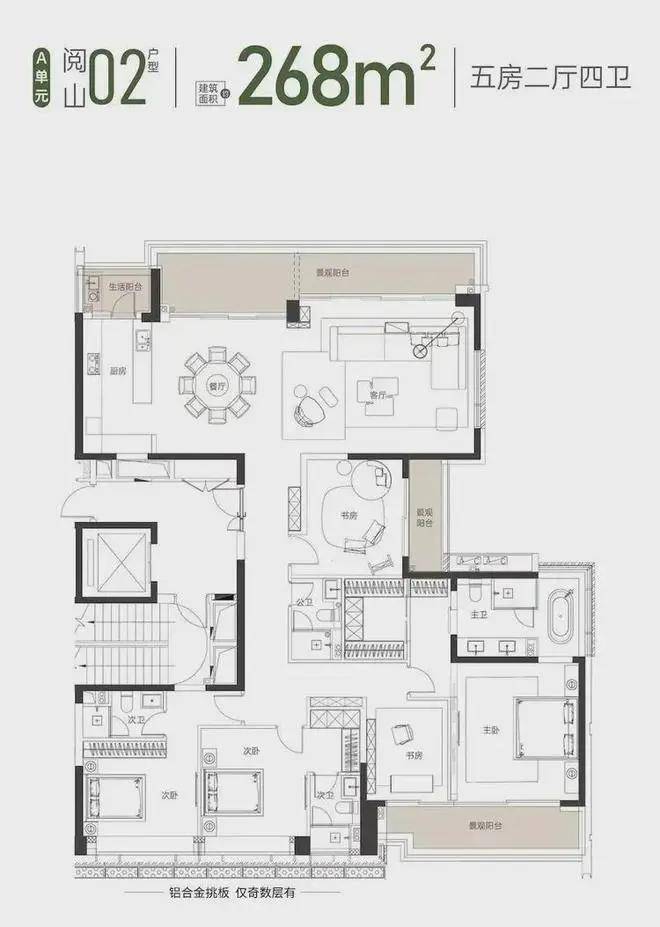 珑樾山建面约 268 ㎡ 02户型 5房2厅4卫