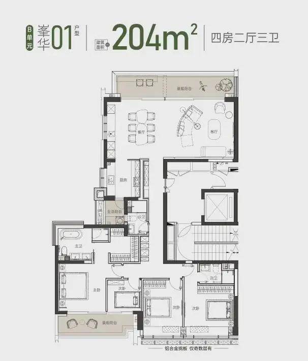 珑樾山建面约 204 ㎡ 01户型 4房2厅2卫