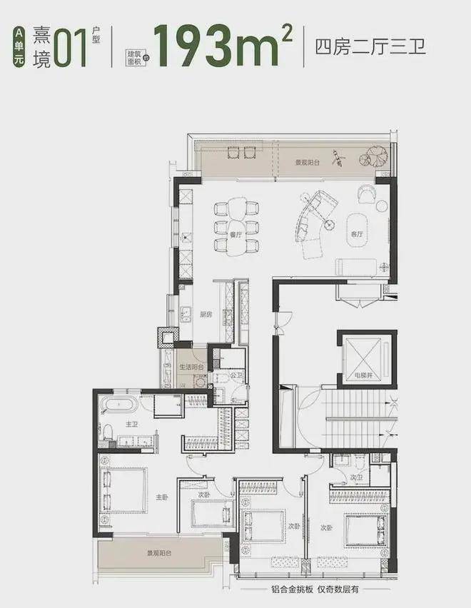 珑樾山建面约 193 ㎡ 01户型 4房2厅2卫