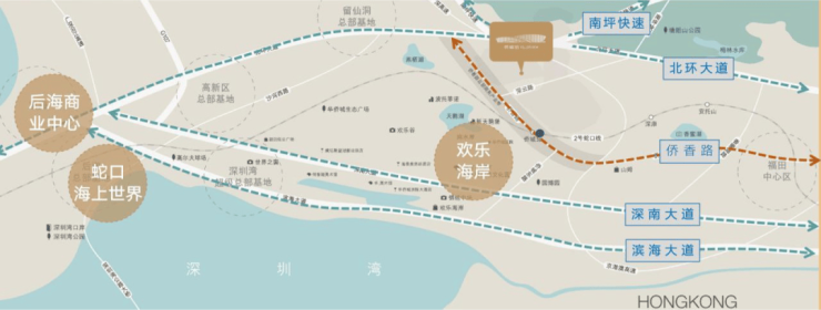豪宅集群环绕 华侨城豪宅基因,30年沉淀醇熟高端生活居住地,周边豪宅群集;西接前海、东临福田、北连留仙洞总部基地、南连后海中心,商务中枢