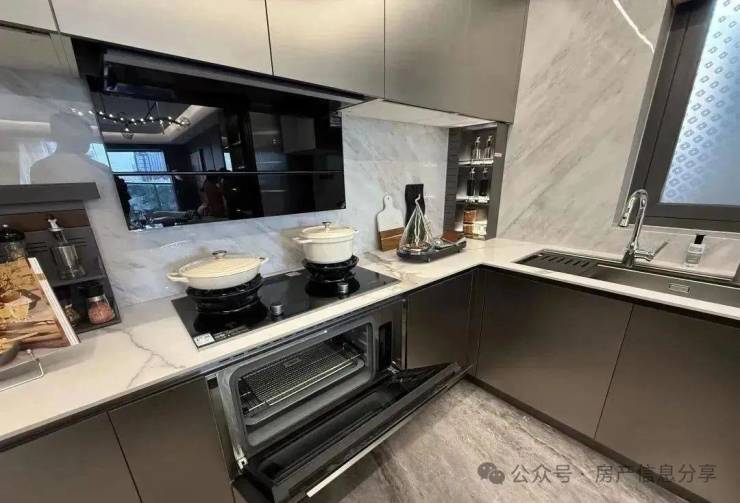 橱柜内藏了不少设备,基本上都是集成联动和智能的,如方太烟灶联动、蒸烤一体机、净洗集成系统等等。功能贼多就不展开了,大家可以直接到现场把玩。
