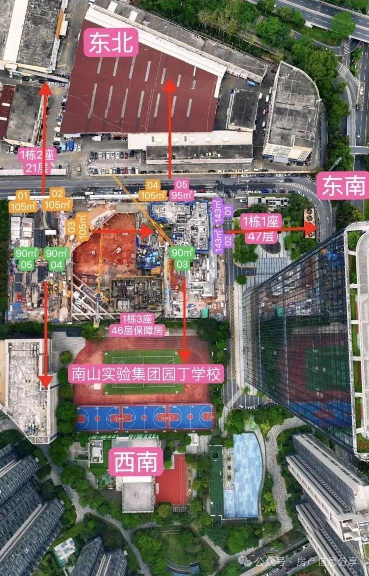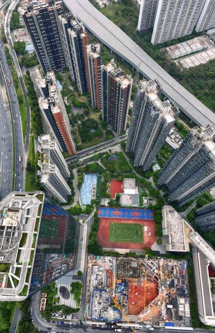 △以上为95-105㎡东北朝向视野,能看到远处的留仙洞总部基地跟南山科技园,也是视野最开阔的一个朝向但是朝向是东北(以上为航拍视野仅供参考)