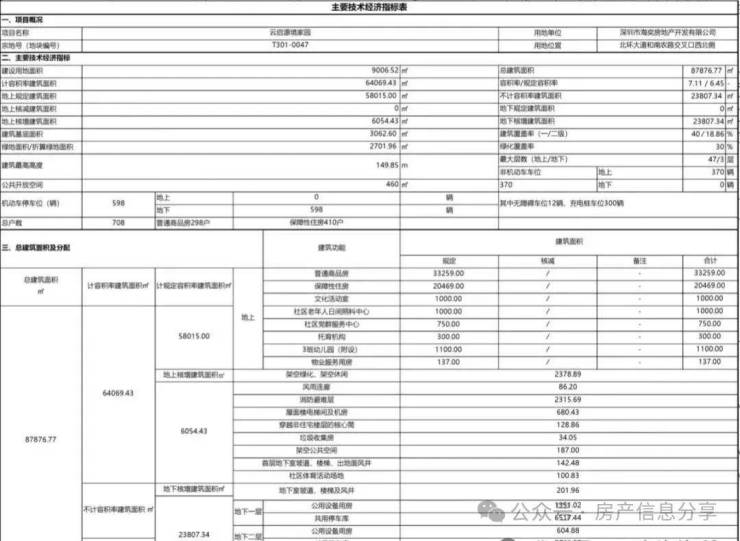 小区占地面积仅9006.52平米,共 3 栋住宅楼,其中2栋21-47层商品房住宅、1 栋 46层保障房。总户数708户,普通商品房298户,保障性住房410户。