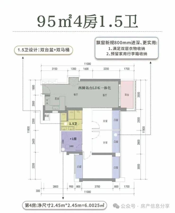 其中95-105两个户型可以改3+1房