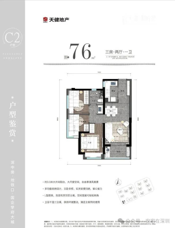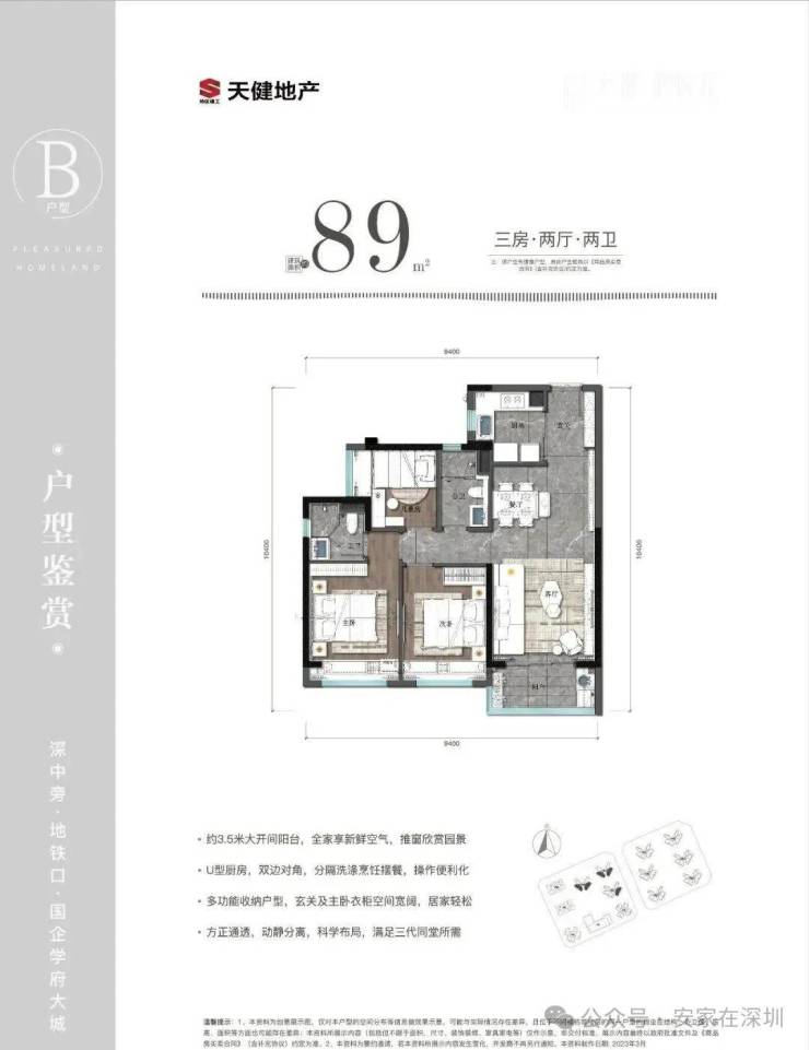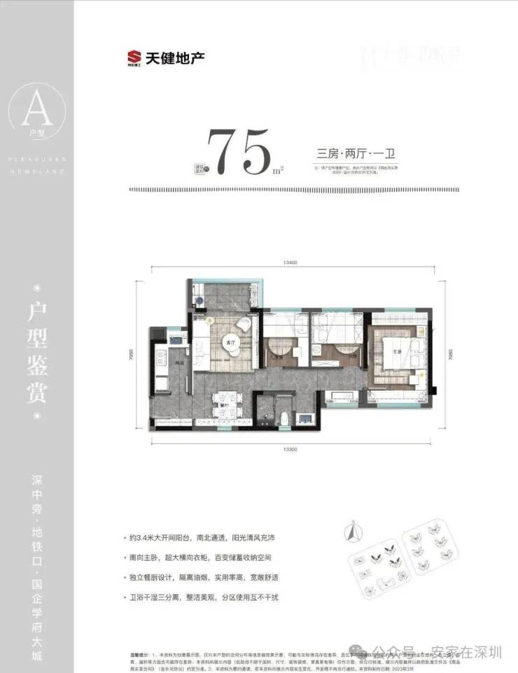 深圳天健和悦府首发 75-99㎡高实用率三房,主力户型为约75㎡三房两厅一卫、89㎡三房两厅两卫、99㎡三房两厅两卫还有约75㎡|南向通透 实用三房,装修交付