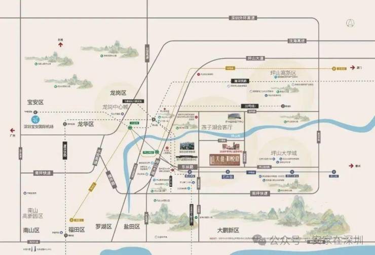 2高铁:厦深铁路坪山站、深汕高铁坪山站(在建中)约7KM,半小时直达深圳CBD。