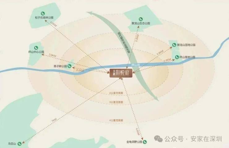 项目坐拥一河一带六公园,约1.6KM到坪山河;东侧是政府打造的现代都市农业观光带,供业主游览的观光长廊;约5KM到燕子岭生态公园(天然氧吧),紧邻聚龙山湿地生态园(全国最大湿地公园)、聚龙山生态公园、坪山中心公园、松子坑森林公园、金龟郊野公园等,近享慢节奏度假时光。