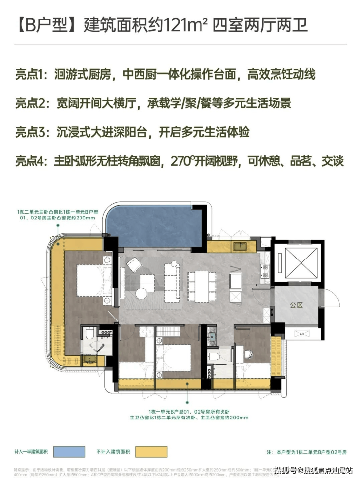 建面约121㎡开阔横厅高配四房;