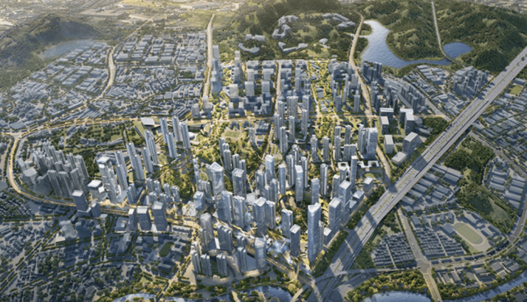 鸿荣源观城共分六期开发,项目更新单元拆除用地面积72.65万㎡,开发建设用地面积38万㎡,计容积率建筑面积为275.1万㎡。将分六期开发,业态涵括住宅、商业、办公、创新产业用房、教育及相关文体配套设施。