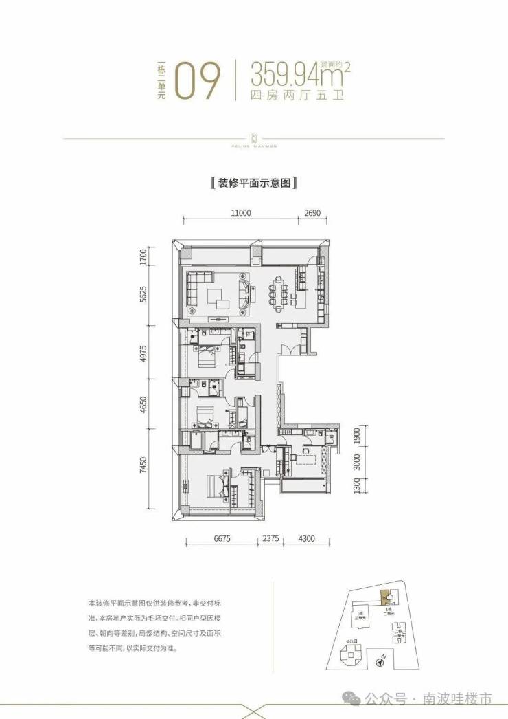 【建面约360平4房全套房2厅5卫】