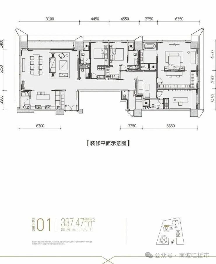 【建面约337平4房全套房+1工人房3厅6卫】