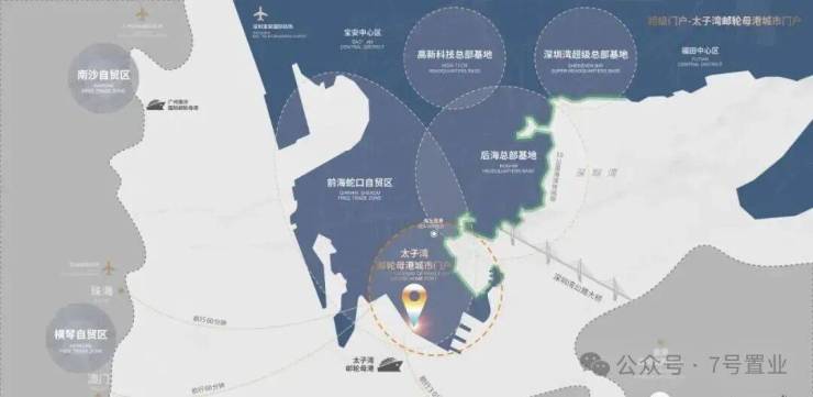 紧邻太子湾地铁站(在建)和邮轮母港,一小时内通达大湾区,作为一个交通的接驳中心,太子湾海、陆、空、轨四维立体交通,港珠澳深中心,两岸四地战略枢纽,紧邻世界最大机场群、港口群,资源集中,高效商务得以在此实现。
