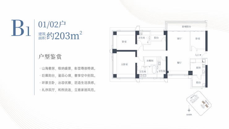 匠筑建面约124-203㎡全生命周期天幕户型,360°采光通风,270°环景主卧,山海日常推窗可得。背山面海,藏风聚气,家宅福泽之地。