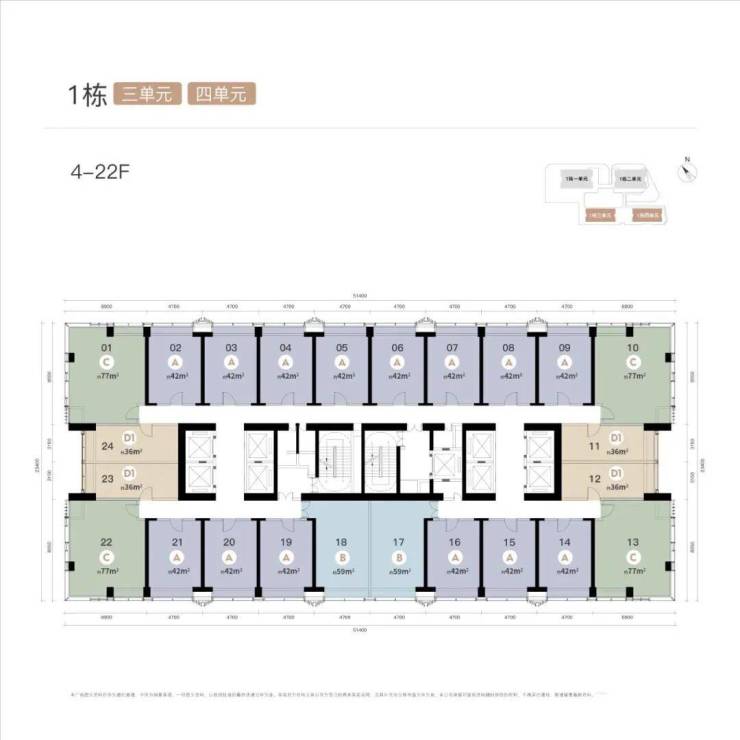 公寓:约36-77㎡ 层高3.6米