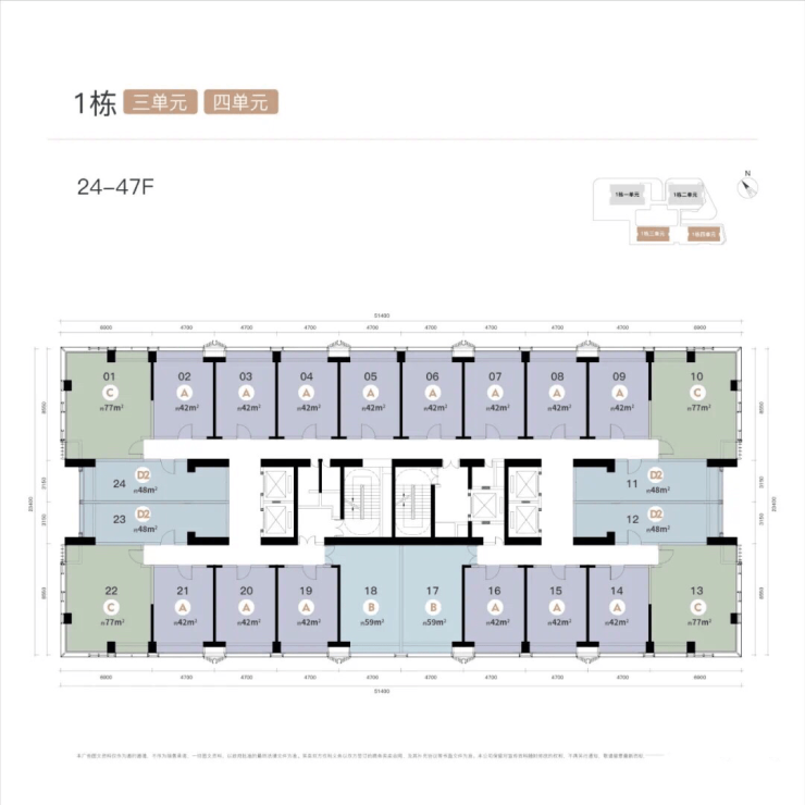 楼层:1、2单元43层,3、4单元48层