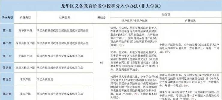 龙华区入学政策:在龙华区买房,不需要等交房也可以申请学校,只需要网签合同和不动产查询单即可上学。以下为龙华区积分入学办法表格,供大家参考:
