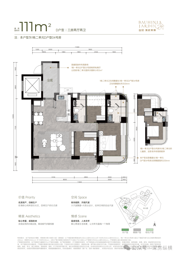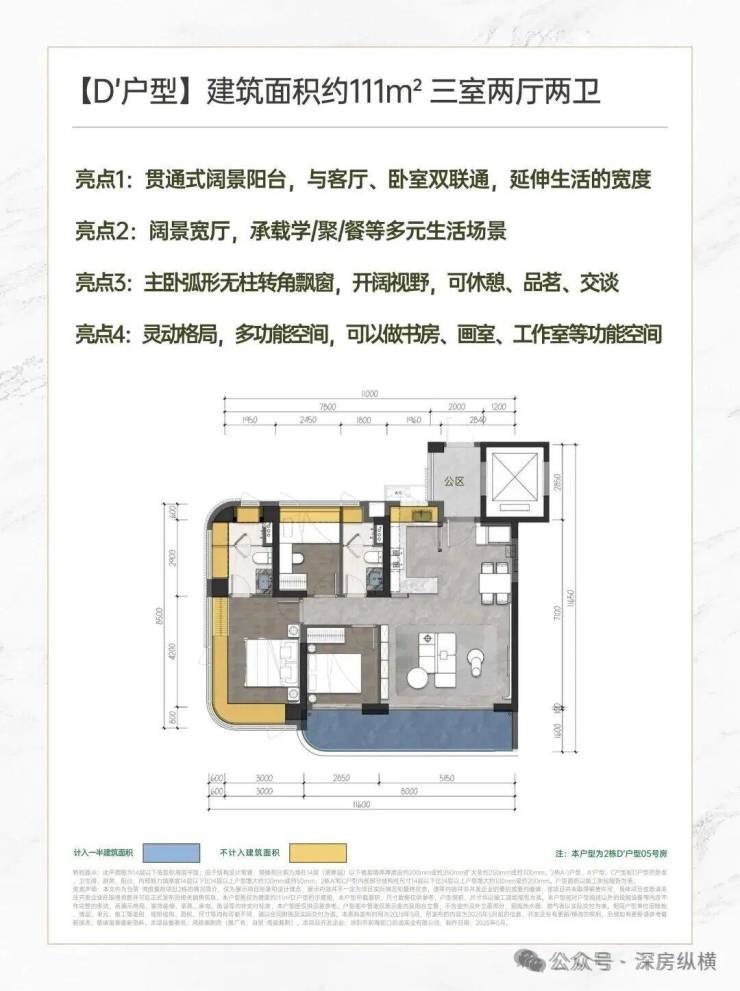 建面约111㎡宽厅阔景 灵动三房;