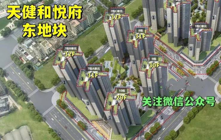 天健和悦府,由天健集团打造,总占地面积约7.62万㎡,总建筑面积约32.8万㎡,计容建筑面积23.93万㎡,容积率4.77,绿化率40%,分东西2个地块开发,共由13栋21-45层高的住宅组成,总规划2833户,其中可售商品房1740套,规划停车位2599个,车位占比约1:0.91。