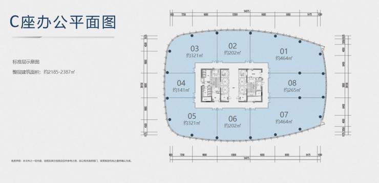 标准层面积:2100-2650㎡