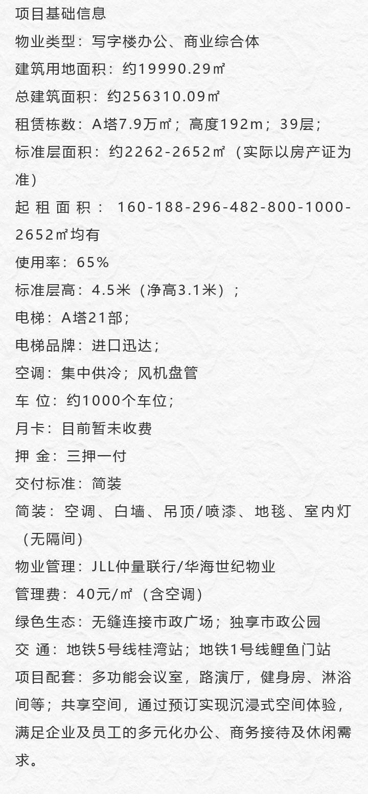 【A座】300㎡起租,总面积7.9万㎡,总高192m,39层