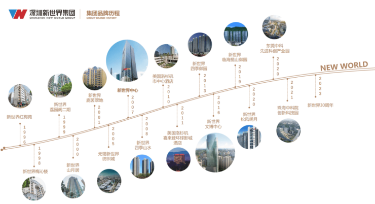 1996年5月,新世界首作——新世界红梅苑面世,赢得市场一致好评,而后开发多个精品楼盘,代表作有:新世界山月居、新世界中心、新世界文博中心、新世界松风明月、新世界临海揽山御园等,助力城市焕新升级。