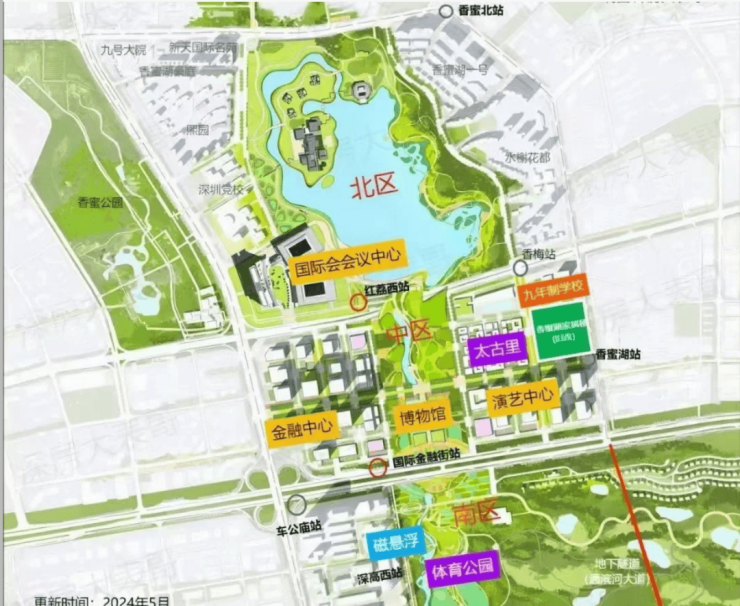 2018年,福田区一号文件首次提出,香蜜湖片区将打造深圳金融街及国际交流中心,在各方的努力协调下,“香蜜湖金融街”雏形初现。香蜜湖新金融中心,按照目前规划,主要分为北区和中区,中区未来将规划落成深圳金融文化中心、深圳博物馆、深圳国际演艺中心三馆,北区是深圳国际交流中心。