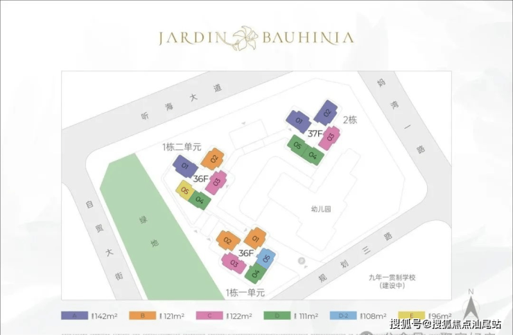 小区有485套纯住宅,车位595个,容积率5.14,共有三栋住宅,每栋做了36-37F高的4梯5户设计,每户都有专梯入户空间。