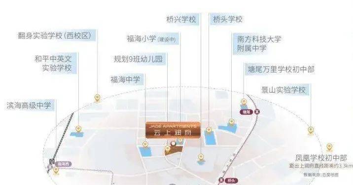 教育配套:项目自带有1所9班制幼儿园,周边2公里范围内分布有10余所学校,包括九年一贯制桥头学校、福海小学、福海中学等,满足全阶段教育需求。