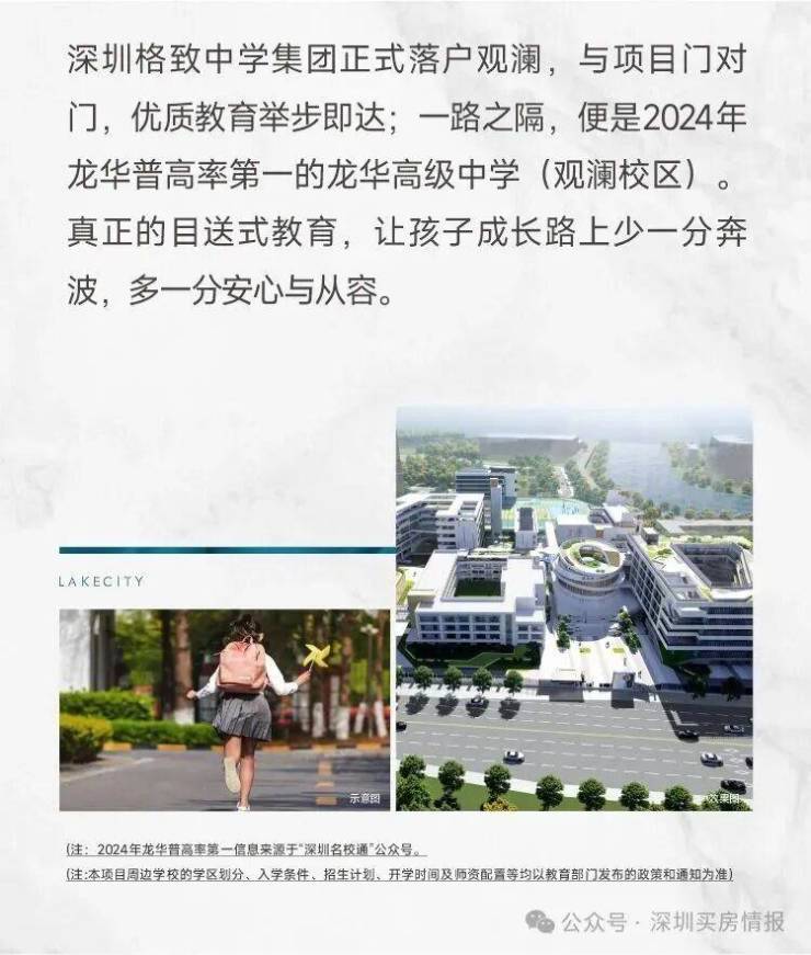 另外深物业澜湖时代仅一路之隔的龙华高级中学观澜校区,是全龙华区招生的。