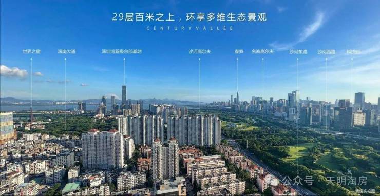 🌅 【景观】坐拥山/河/海/湿地/郊野五重景观,北望塘朗山、南向深圳湾、西临约200万㎡一线果岭,俯瞰约13.7KM大沙河生态长廊,东瞰华侨城绿地。